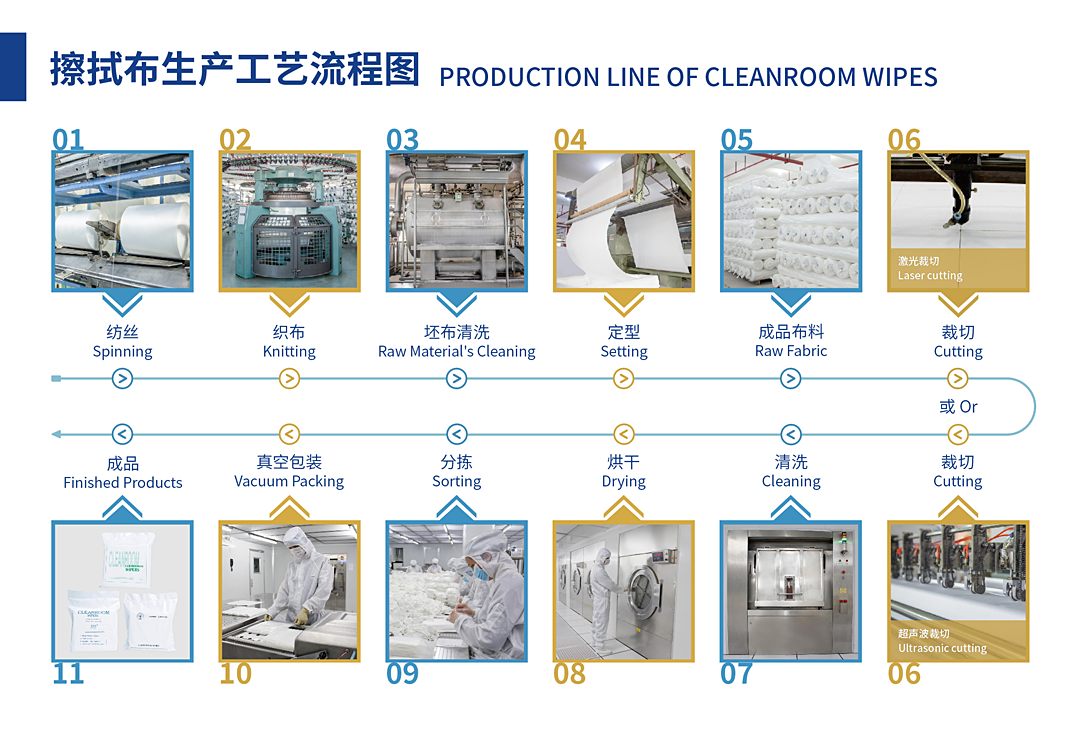 Dans le processus de fabrication des semi-conducteurs, les essuyeurs de salle blanche sont utilisés pour éliminer les minuscules particules, les résidus organiques et les ions métalliques de la surface des composants de précision, garantissant ainsi leur propreté de surface.